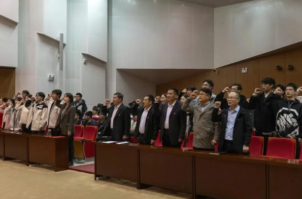 在党委宣传委员、学院办公室主任王云胜同志的领誓下,与会全体党员面向党旗庄严宣誓,铮铮誓言铿锵有力,彰显了新时代党员对党忠诚、为共产主义事业奋斗终身的坚定决心。