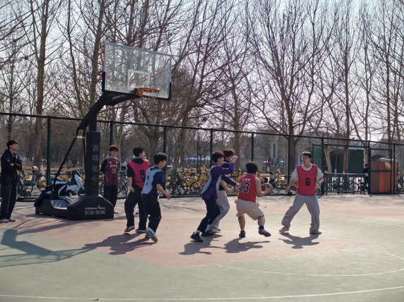 场上运动员们精神抖擞、斗志昂扬,队友间心有灵犀、默契配合,精准传球、严密防守、果断抢断、奋力突破、精准投篮,每一个动作都干脆利落、一气呵成,用汗水诠释着青春的热血与激情。场下观众们热情高涨、呐喊助威,掌声与欢呼声此起彼伏。