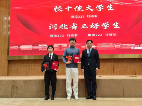 河北省三好学生、校十佳大学生、测控222班刘柏羽同学分享了其在学业与体育赛事中实现双向突破的成长历程,展现了新时代青年的拼搏风采;测控221班张舜同学以学年绩点提升0.92的逆袭经历,讲述了突破自我、坚持奋斗的蜕变故事,在场学生深受鼓舞。