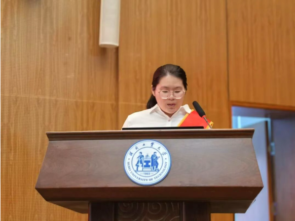 学年满绩点并推免至本校的学习标兵、院党员示范班班长、测控223班刘佳鹭同学宣读了《机械工程学院学风建设倡议书》,号召全院学生勤学笃行、传承优良学风,共同营造严谨求实的学习氛围。