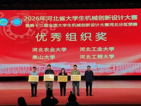 4月17至19日,2026年河北省大学生机械创新设计大赛暨第十二届全国大学生机械创新设计大赛河北分区预赛在河北工程大学圆满落幕。我院精心遴选、集中培育的15件参赛作品,历经小组初评、现场答辩、复赛比拼等多轮严苛考验,凭借扎实的设计功底、鲜明的创新亮点和出色的实践性能,在全省众多参赛队伍中脱颖而出,斩获特等奖3项、一等奖4项、二等奖5项、三等奖3项,其中拟推荐全国三等奖作品一项、拟推荐全国决赛作品两项。同时,学校凭借出色的组织协调工作和优异的参赛成绩,荣获“优秀组织奖”。