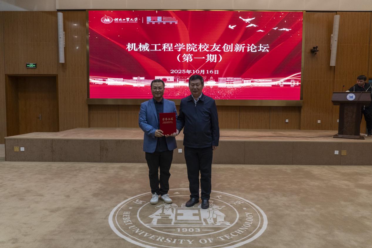 10月16日16:00,“机械工程学院校友创新论坛(第一期)”在机材楼报告厅举行。机械工程学院党委书记杨占力,工业技术研究院院长戴士杰,副书记兼副院长王素丹,天津校友会机械分会关玉明、邢建海以及在校生校友代表参会。论坛由国家工程技术研究中心副主任杨伯军主持。