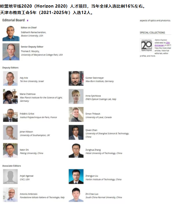 经美国光学学会OSA(Optics Society of America)光学类顶级国际期刊《Optics Express》主编的推荐,编辑委员会和出版委员会投票表决,聘任机械工程学院测控系张宗华教授自2026年3月1日起担任该期刊的高级职位Deputy Editor。该期刊是美国光学学会OSA于1997年创刊出版的国际光学研究领域的著名期刊,连续多年属于二区Top期刊,在仪器科学与技术、光学工程、光电子与光子学技术、电子科学与技术、物理学等学科具有重要的影响力。该刊的创办单位美国光学学会OSA成立于 1916 年,是光学领域权威的国际性学术组织。https://opg.optica.org/content/journal/about/item/oe/#board。